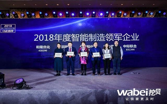 和隆优化荣获挖贝“2018年度智能制造领军企业”奖项