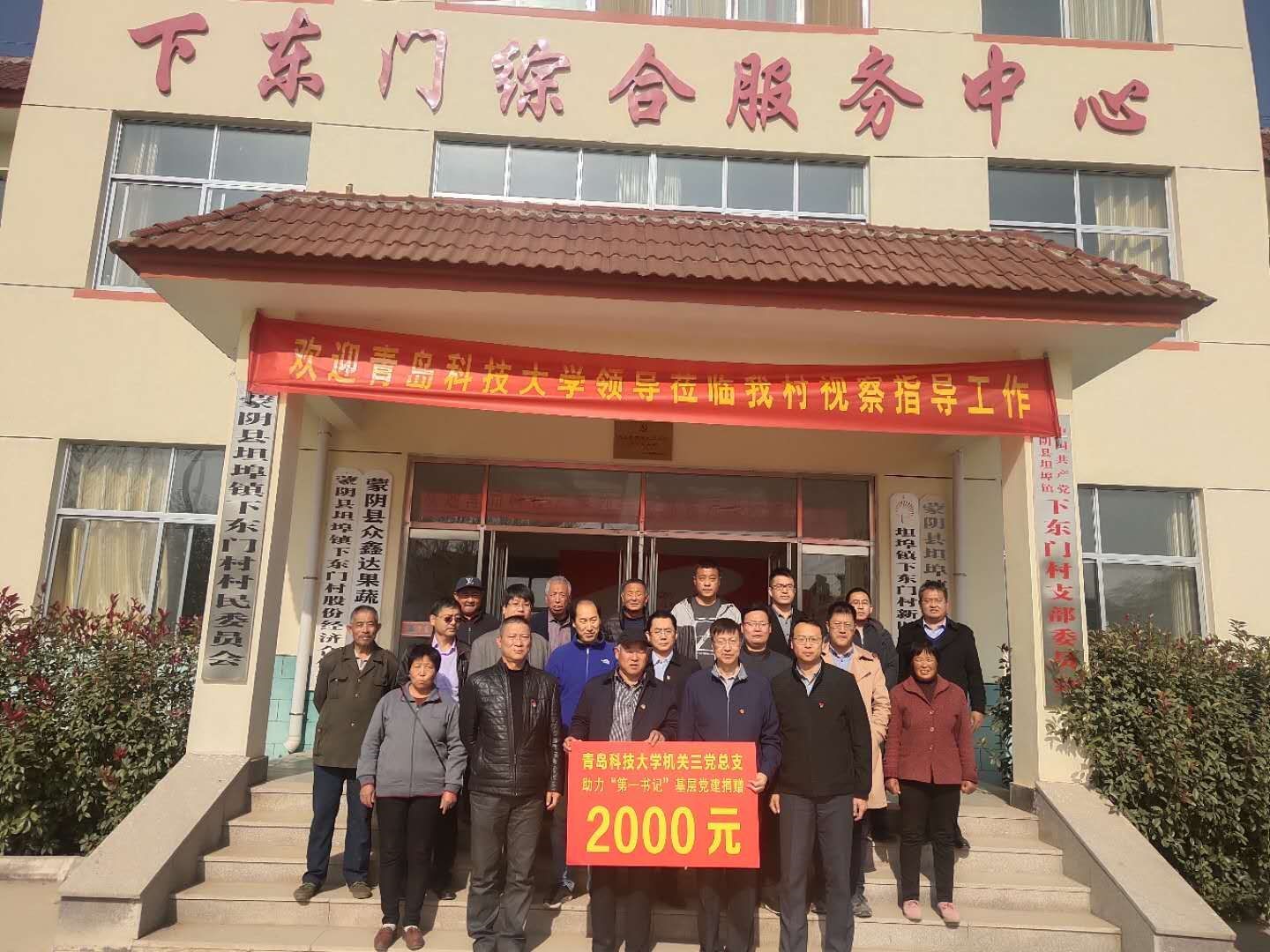 近日,机关三党总支顺利完成换届选举工作。为深入贯彻落实十九届五中全会精神,不断增强基层党组织政治功能,提升基层党组织凝聚力,11月6日,新一届总支委员一行9人,在党总支书记陈洪宗带领下赴蒙阴县坦埠镇下东门村开展了”学习沂蒙精神 助力脱贫攻坚”主题教育活动。