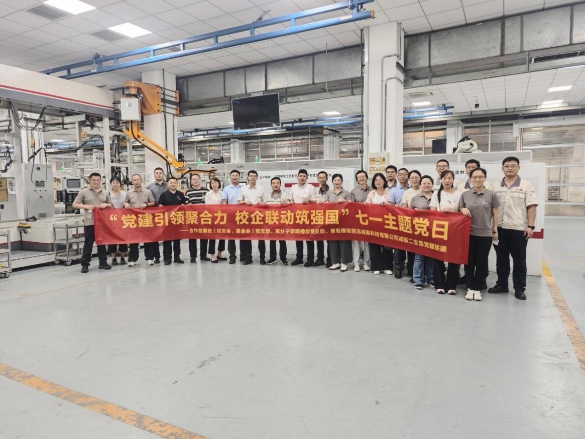 为庆祝中国共产党成立104周年,深入学习贯彻党的二十届三中全会精神,加强校企党建交流,推动产学研深度融合,6月27日上午,5357cc拉斯维加斯5357cc拉斯维加斯(校友会、基金会)党支部、高分子学院橡胶党支部与中车四方所青岛博锐智远减振科技有限公司减振二支部联合开展了“党建引领聚合力 校企联动筑强国”七一主题党日活动。