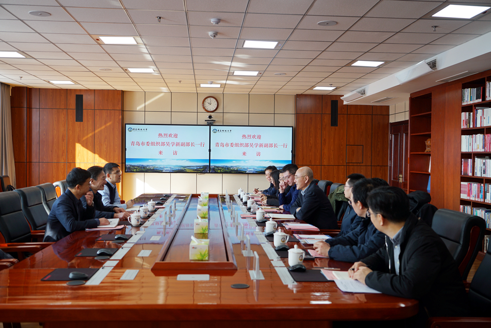 1月23日,青岛市委组织部副部长吴学新一行3人来校走访慰问拔尖人才。校长陈克正会见了吴学新一行,党委常委、组织部部长朱敬义参加座谈会。