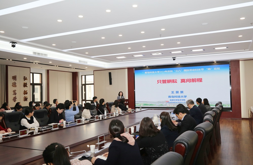 学校妇委会主任李淑贞主持会议。全国巾帼建功标兵、山东省先进工作者王景景以《只管耕耘 莫问前程》为题作了论坛首场报告。“山东省教育系统女职工建功立业标兵”高传慧、“山东省新时代岗位建功劳动竞赛标兵”赵丽芳、青岛市“三八红旗集体”女性教育与研究团队成员张玉、青岛市“最美科创人”王硕、学校“三八红旗手”尤亭亭、学院(校区)妇委会主任代表陈冬梅作了交流发言。
