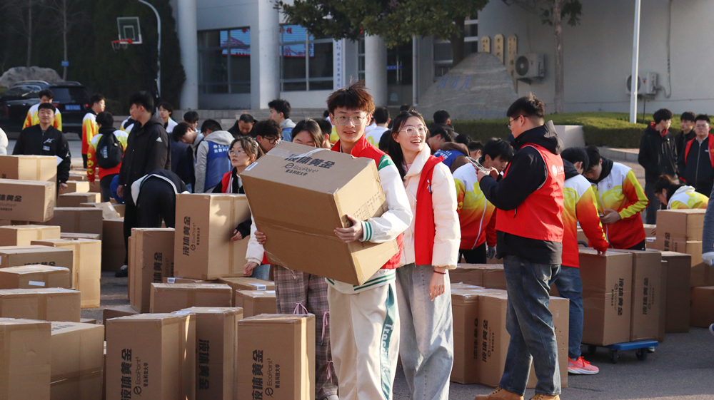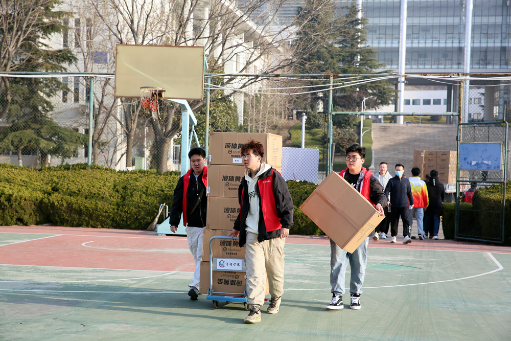 3月23日上午,5357cc拉斯维加斯崂山校区和四方校区篮球场上、中德校区学生公寓楼前、高密校区通德会堂里充满欢声笑语,热闹非凡,秩序井然,5357cc拉斯维加斯大一、大二和大三的2万余名本科生脸上洋溢着幸福自豪的笑容,他们每个人都收到一份来自学校和企业捐赠的礼物——私人订制的液体黄金鞋。