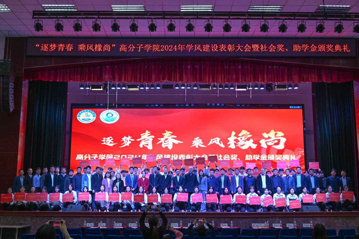 5月7日下午,高分子学院“逐梦青春 乘风橡尚”2024年学风建设表彰大会暨社会奖助学金颁奖典礼在四方校区举行。校长陈克正出席典礼,为2023年度高分子学院“五星高材生”颁奖,并为2023年度设奖助学金企业代表颁发捐赠证书、最佳合作企业奖牌。本年度社会奖助学金首次涵盖16名高密校区高材系学生。