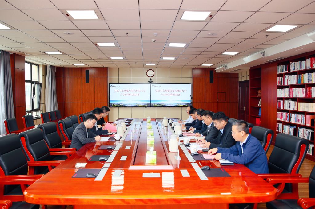 金政伟对学校政产学融合的“青科大模式”表示赞赏,对学校近些年有组织开展社会服务所取得的成绩表示祝贺。他介绍了宁东基地发展历程,在精细化工、新材料、新能源等重点产业链布局以及企业用人需求、宁夏高等研究院建设等情况。他指出,青科大学科优势与宁夏的产业布局高度契合,双方合作潜力大、领域广,希望青科大充分发挥学科、人才、科研、资源优势,进一步扩大与宁夏在科技创新、科技成果转化、人才培养等方面的合作,共同为黄河流域生态保护和高质量发展以及宁夏高等研究院建设贡献智慧和力量。