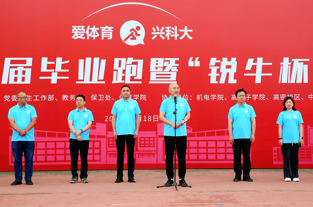 活动现场,校长陈克正领跑并深情寄语全体毕业生:“希望你们能树立远大理想,深刻领会‘爱体育、兴科大’、‘拥抱体育、出彩人生’的品牌内涵,养成运动习惯、培养体育爱好、练就强健体魄,打好“青春为中国式现代化挺膺担当”的坚实基础,在拥抱体育中追求出彩人生,在体育运动中享受乐趣、增强体质、健全人格、锤炼意志,积极投身强国建设、民族复兴的伟大事业,奋力跑出新时代科大青年的青春加速度。”