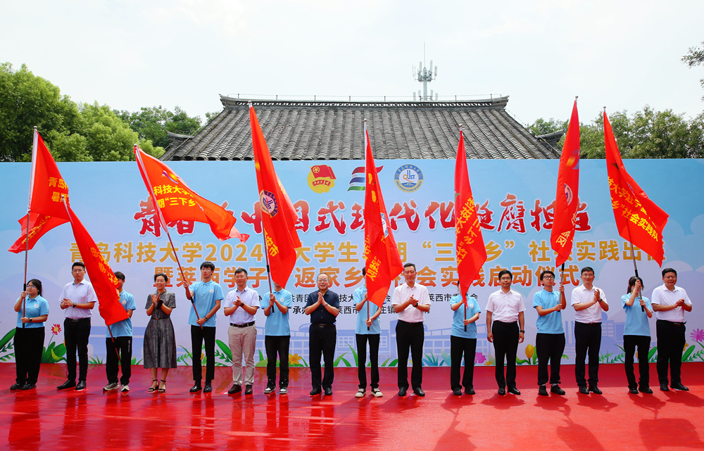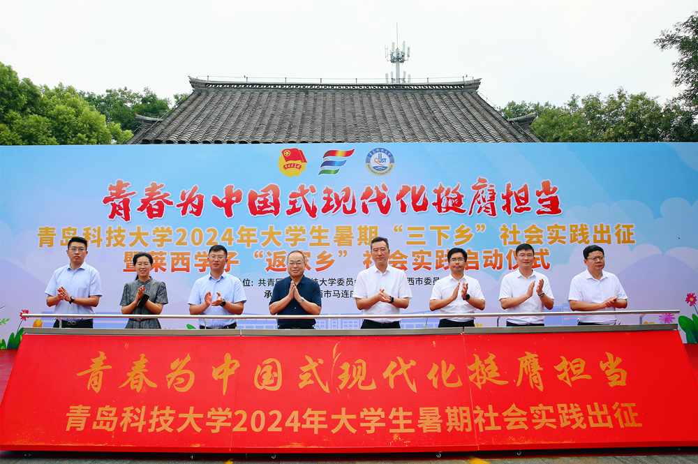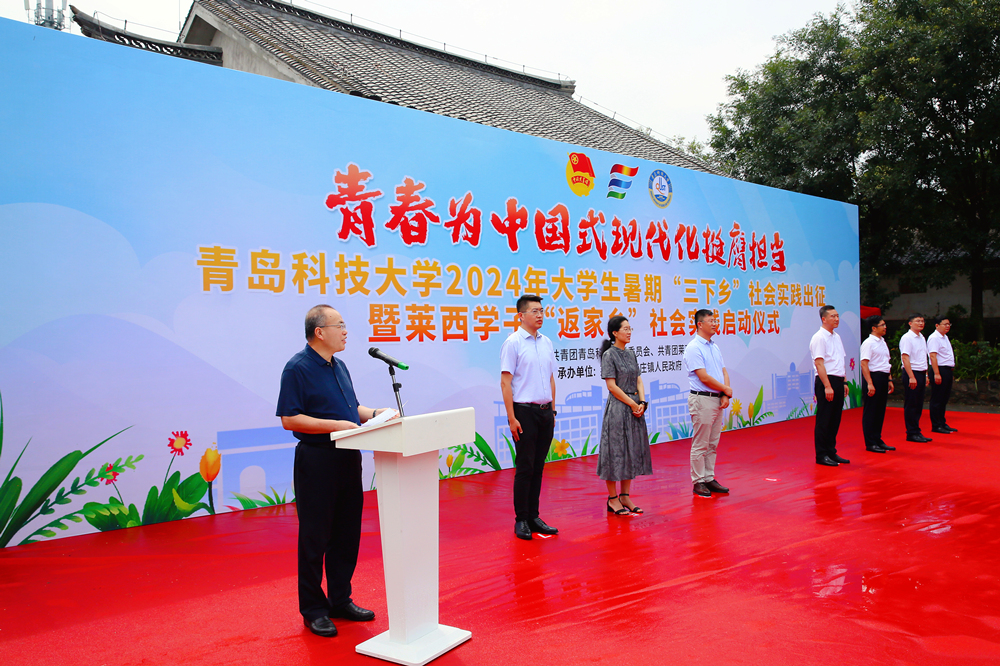7月17日,学校2024年大学生暑期“三下乡”社会实践出征仪式在莱西市马连庄镇河崖红色教育基地举行,学校党委常委、副校长丁林,莱西市委常委、统战部部长、市政府副市长张鹏出席仪式。学校相关部门负责人,校院两级团组织负责人、社会实践指导老师及校级实践团队负责人、莱西籍大学生代表参与本次仪式。