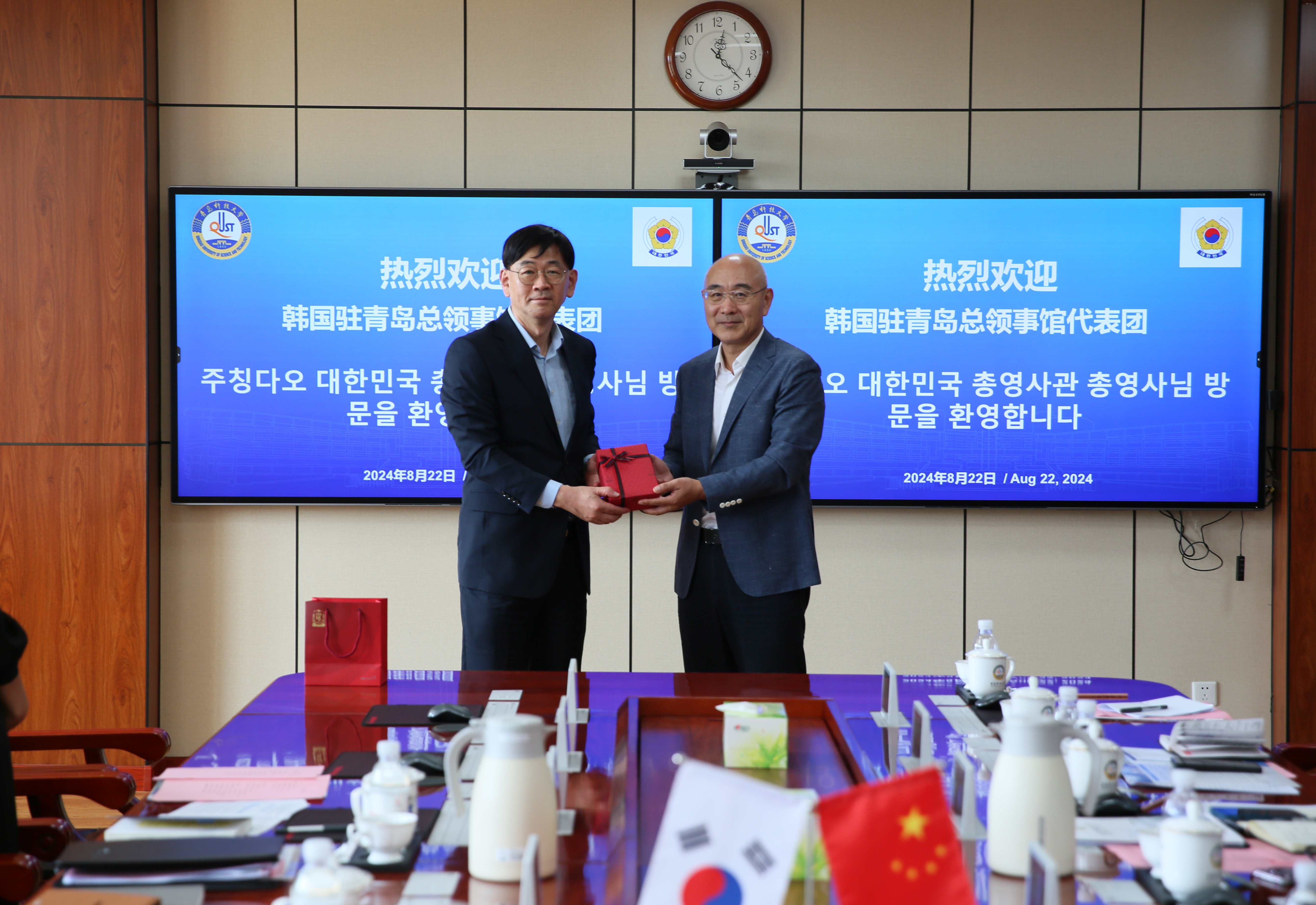 8月22日,韩国驻青岛总领事馆总领事柳昌秀一行来访,校长陈克正会见并座谈,党委副书记沈文青主持会议。