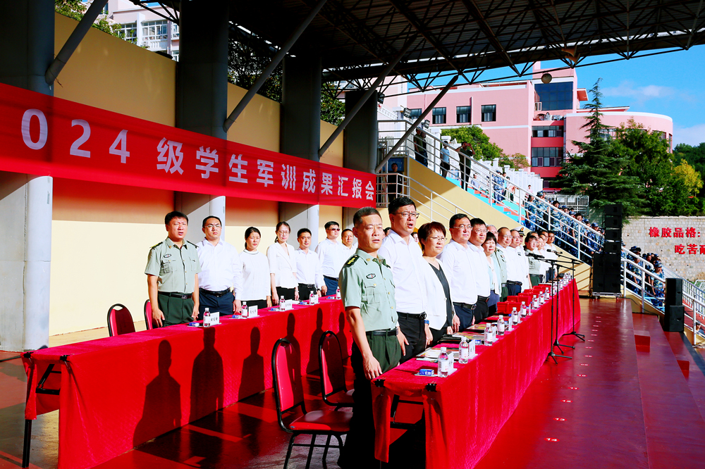 军训成果汇报环节,各连队在带队教官的指挥下依次进行入场汇报,全体学生以整齐军容、飒爽军姿,展现着历经磨砺后的蜕变,赢得现场观众阵阵掌声。