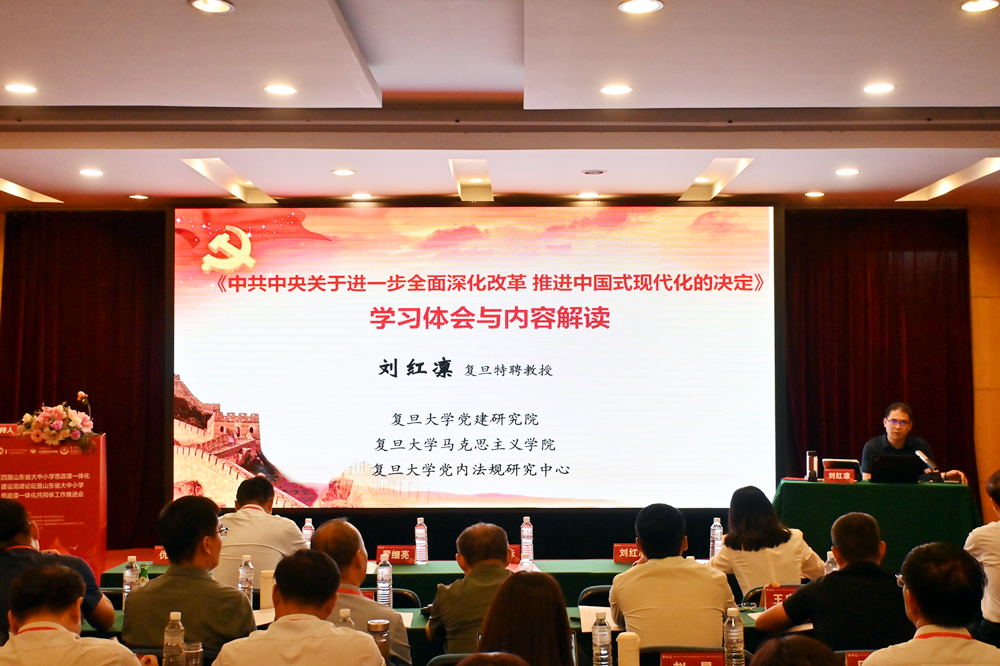 开幕式后,刘红凛作了党的二十届三中全会精神辅导报告。高保卫、冀萍、山东省教育科学研究院课程中心主任张彩霞分别作了大中小学思政课一体化改革创新的辅导报告。