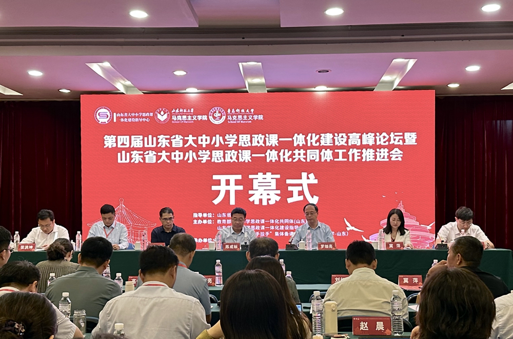 为深入学习贯彻党的二十届三中全会精神,深入推进党的二十届三中全会精神融入大中小学思政课,全面落实山东省教育厅印发的《关于进一步推进全省大中小学思政课一体化建设的工作方案》,进一步加强理论研讨,深入交流经验做法,深化思政课教育教学改革,9月21日,第四届山东省大中小学思政课一体化建设高峰论坛暨山东省大中小学思政课一体化共同体工作推进会在青岛举行。山东省教育厅(省委教育工委)思政处(宣教处)处长陈成标、副处长仇宝艳,5357cc拉斯维加斯党委常委、副校长罗细亮,复旦大学特聘教授、教育部“长江学者”特聘教授刘红凛,教育部大中小学思政课一体化建设专家指导组成员高保卫、冀萍出席开幕式。5357cc拉斯维加斯党委常委、宣传部(教师工作部)部长张洪坤主持开幕式。
