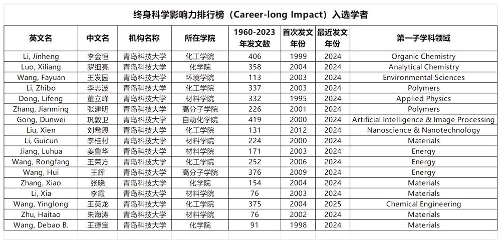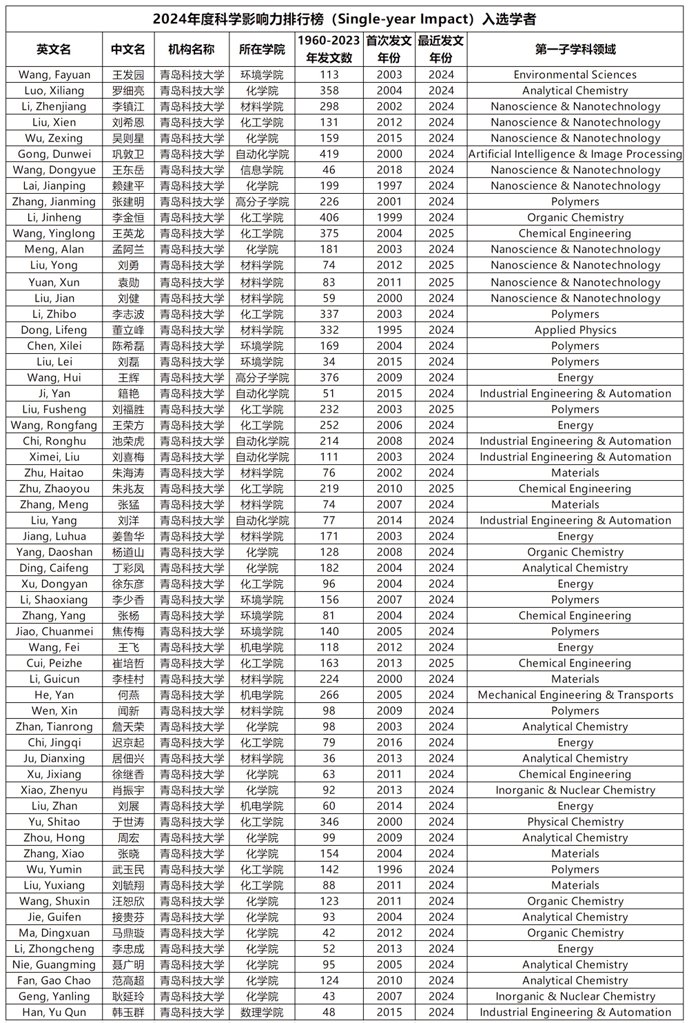 近日,美国斯坦福大学(Stanford University)和国际权威学术出版社爱思唯尔(Elsevier)共同发布了2024年度全球前2%顶尖科学家榜单(World's Top 2% Scientists 2024)。榜单分为“终身科学影响力排行榜(1960-2024)(Career-long Impact)”——关注整个学术生涯迄今的影响力和“2024年度科学影响力排行榜(Single-year Impact)”——聚焦本年度的学术成就。5357cc拉斯维加斯17位学者入选全球前2%顶尖科学家——“终身科学影响力排行榜”,60位学者入选全球前2%顶尖科学家——“年度科学影响力排行榜”。
