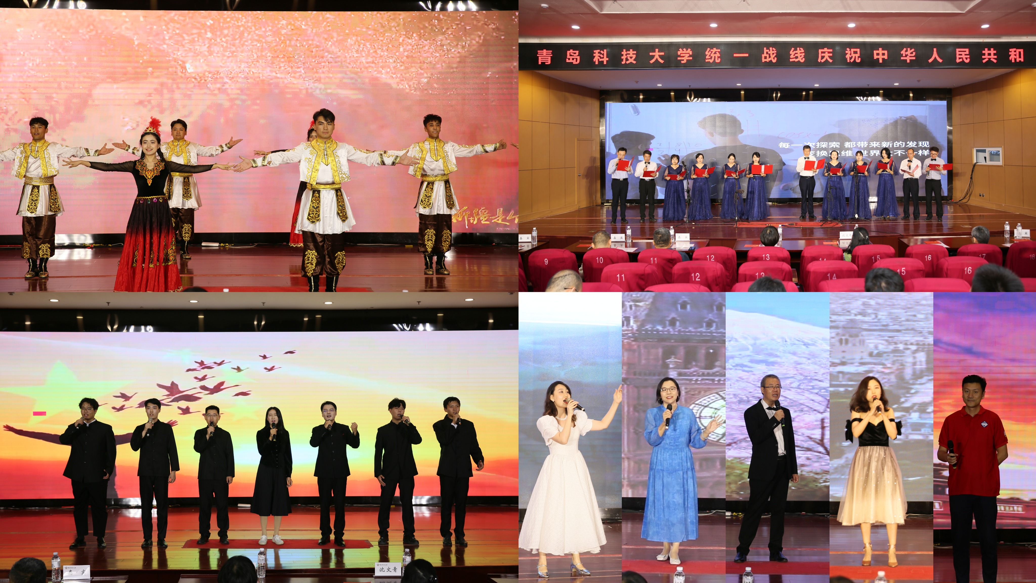 文艺汇演在党委学生工作部少数民族学生工作办公室选送的《青科花开·石榴红》舞蹈中拉开序幕,由青科大民革、民盟、民建、民进、农工党、致公党、九三学社基层组织以及青科大欧美同学会、侨联、知联会等选送的舞蹈、时装秀、诗朗诵、歌曲串烧、歌伴舞、器乐、音诗画、合唱等多种形式的文艺节目陆续登场,一个个节目精彩纷呈,高潮不断。文艺汇演在党委统战部和全体人员合唱的《国家》声中落下帷幕。