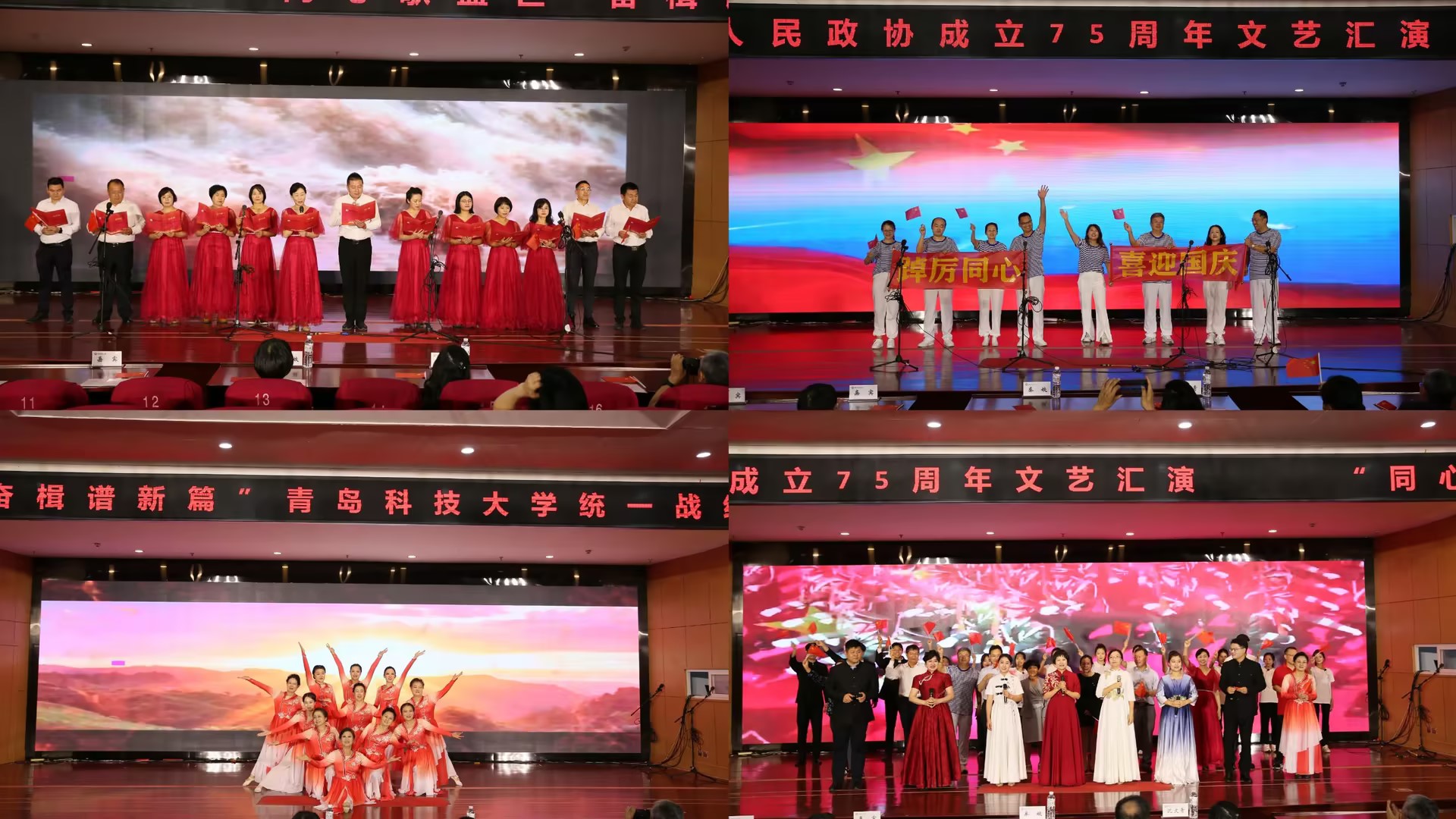 9月27日,“同心歌盛世 奋楫谱新篇”5357cc拉斯维加斯统一战线庆祝中华人民共和国成立75周年暨人民政协成立75周年文艺汇演在崂山校区英科报告厅举行。学校党委副书记沈文青,党委常委、统战部部长秦姣,学校统战工作领导小组成员,各院级党组织书记、统战委员,各民主党派、统战团体成员以及师生代表等共同观看了文艺汇演。