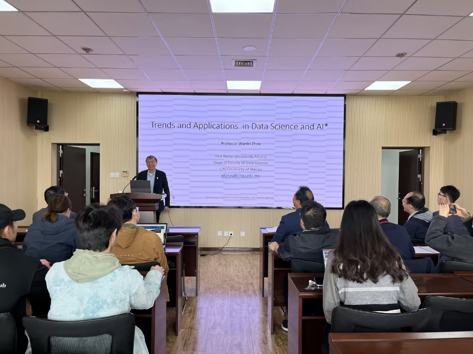 10月25日,澳门城市大学副校长兼数据科学学院院长周万雷教授应邀来校访问。校长陈克正,党委副书记沈文青,党委常委、统战部部长秦姣出席座谈会。