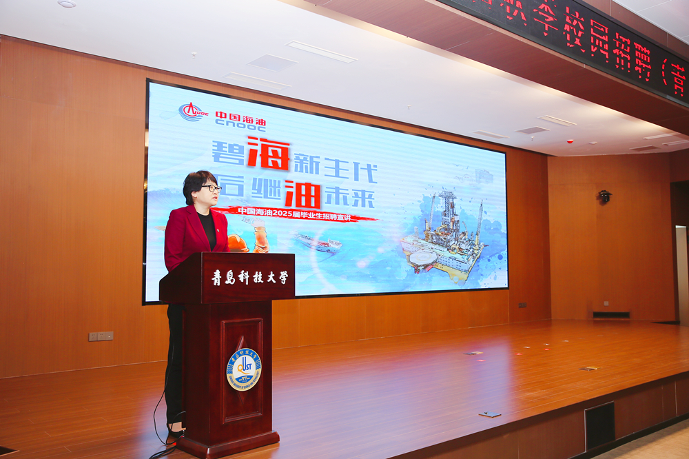宣讲会上,李慧超代表中国海洋石油集团有限公司现场宣讲,她以“碧海新生代,后继‘油’未来”为主题,对中国海油的发展前景、人才培养、薪酬待遇、招聘流程等方面进行了详细介绍。她表示,青科大毕业生的综合素质高、专业能力能,欢迎更多的优秀毕业生选择中国海油,为国家能源安全事业贡献青春力量。