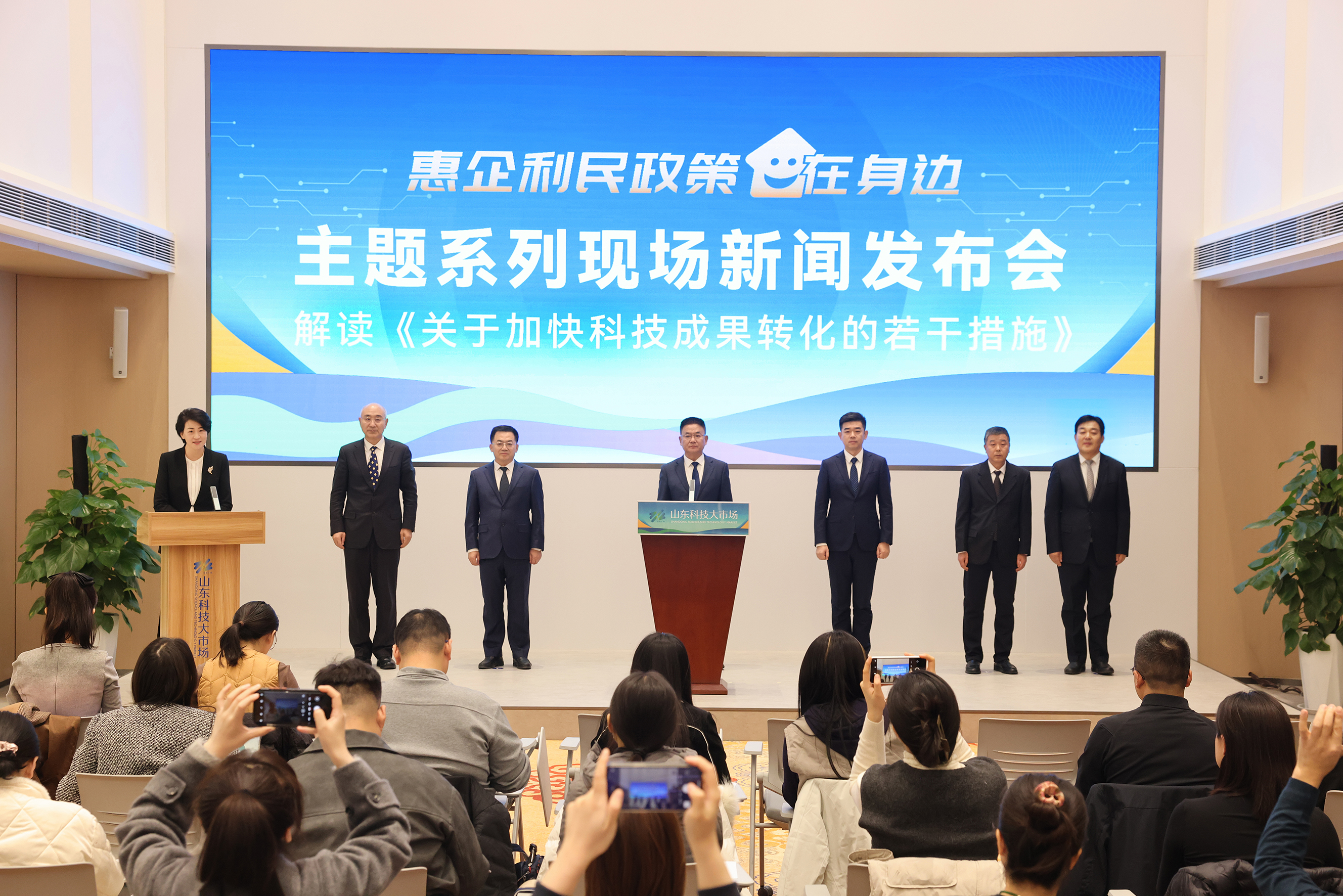 11月29日,山东省人民政府新闻办公室在山东科技大市场举行“惠企利民政策在身边”主题系列现场新闻发布活动第二场。校长陈克正作为全省唯一高校代表受邀出席,重点介绍了学校探索科技成果转化体制机制改革的经验做法,并回答了记者提问。