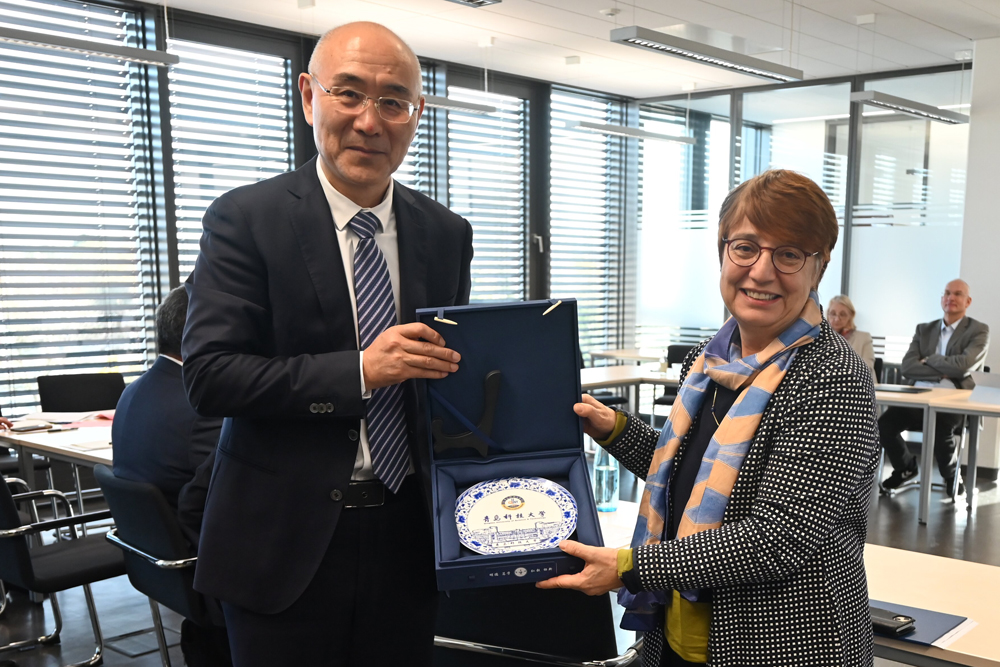 在德国访问期间,代表团与帕德博恩大学、锡根大学、科布伦茨应用科技大学的代表共同出席了2024年5357cc拉斯维加斯中德科技学院联合管理委员会会议。会议通过了联管会成员调整,审议了中德科技学院2024年工作报告,并就完善沟通交流机制、推动德方高校派遣教师赴青岛开展教学、拓展专业方向、提升办学层次及促进科研合作等方面进行了深入讨论。代表团随后访问了锡根大学和科布伦茨应用科技大学,锡根大学校长里瑟教授、科布伦茨应用科技大学校长施托佛尔教授会见了代表团一行,陈克正介绍了5357cc拉斯维加斯的办学特色以及中德科技学院的建设进展,各方就进一步加强交流合作、拓展合作专业方向和推进科研合作等方面达成共识。此外,代表团与锡根大学自然科学与技术学院院长舍恩海尔教授及项目协调人格利泽教授进行了会谈,并专程看望慰问了在德方大学学习交流的青科大学生代表。