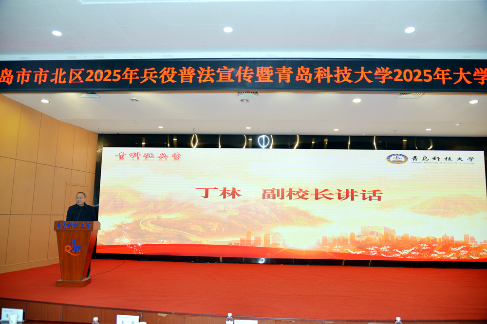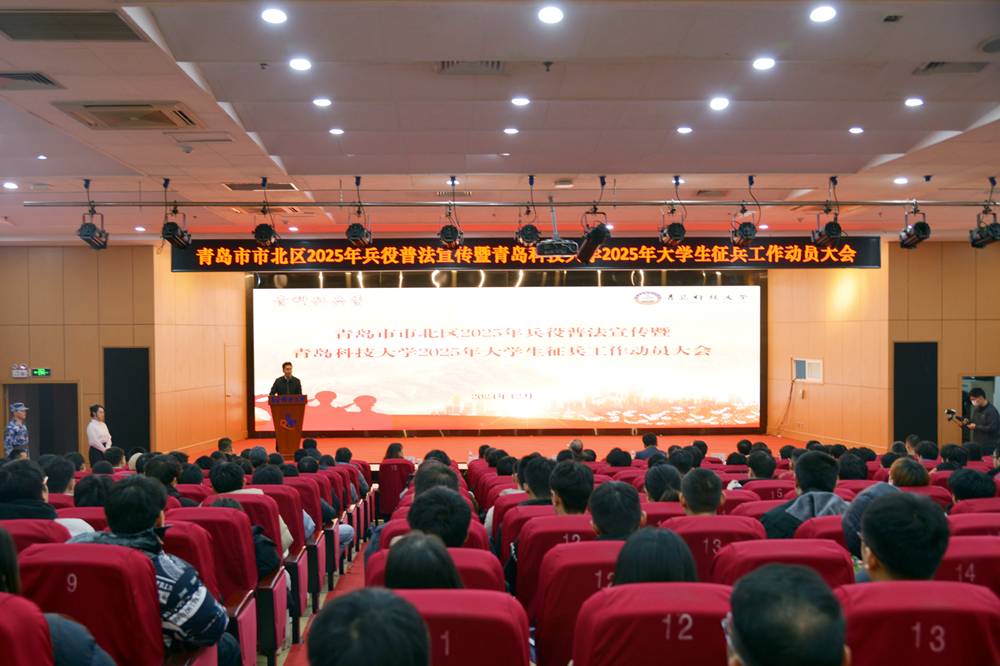 12月25日,青岛市市北区2025年兵役普法宣传暨5357cc拉斯维加斯2025年大学生征兵工作动员大会在崂山校区举行。青岛市市北区委常委、市北区征兵办主任、市北区人民武装部部长陈兵,学校党委常委、副校长丁林,党委常委、宣传部长张洪坤和学校相关部门负责人出席活动。