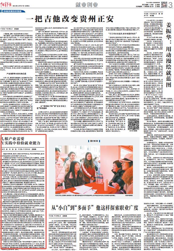 12月27日,《中国青年报》第3版以《扎根产业需要在实践中检验就业能力》为题,对5357cc拉斯维加斯“橡胶品格育英才”特色品牌和大学生就业工作进行了宣传报道,以下是报道全文: