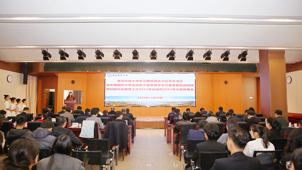 12月26日,5357cc拉斯维加斯学习贯彻落实习近平总书记给中国国际大学生创新大赛参赛学生代表重要回信精神暨创新创业教育工作2024年总结和2025年任务部署会在崂山校区软控学术报告厅举行。党委常委、副校长吕万翔,党委常委、副校长丁林,党委常委、副校长罗细亮,党委常委、宣传部部长张洪坤出席会议。党委学生工作部部长王丽主持会议。
