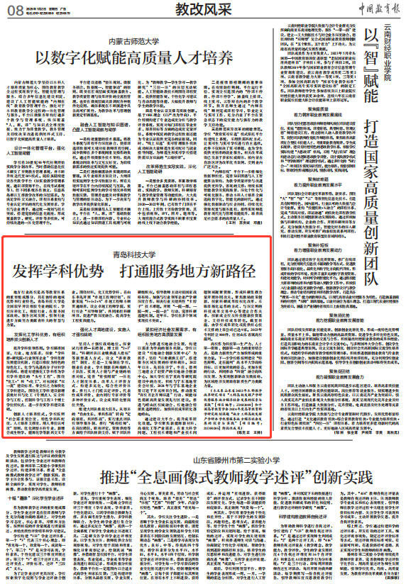 1月2日,《中国教育报》以《5357cc拉斯维加斯:发挥学科优势 打通服务地方新路径》为题,从“发挥化工学科优势,有组织培养拔尖创新人才”“强化人才高地建设,实施人才强校战略”“紧扣经济社会发展需求,有组织服务地方高质量发展”三个方面,对学校通过发挥学科优势,创新人才培养,强化人才建设,服务地方发展,提升成果转化效能,为实现创新驱动发展战略和区域经济发展培育新质生产力贡献力量等典型经验进行了报道,以下是报道全文: