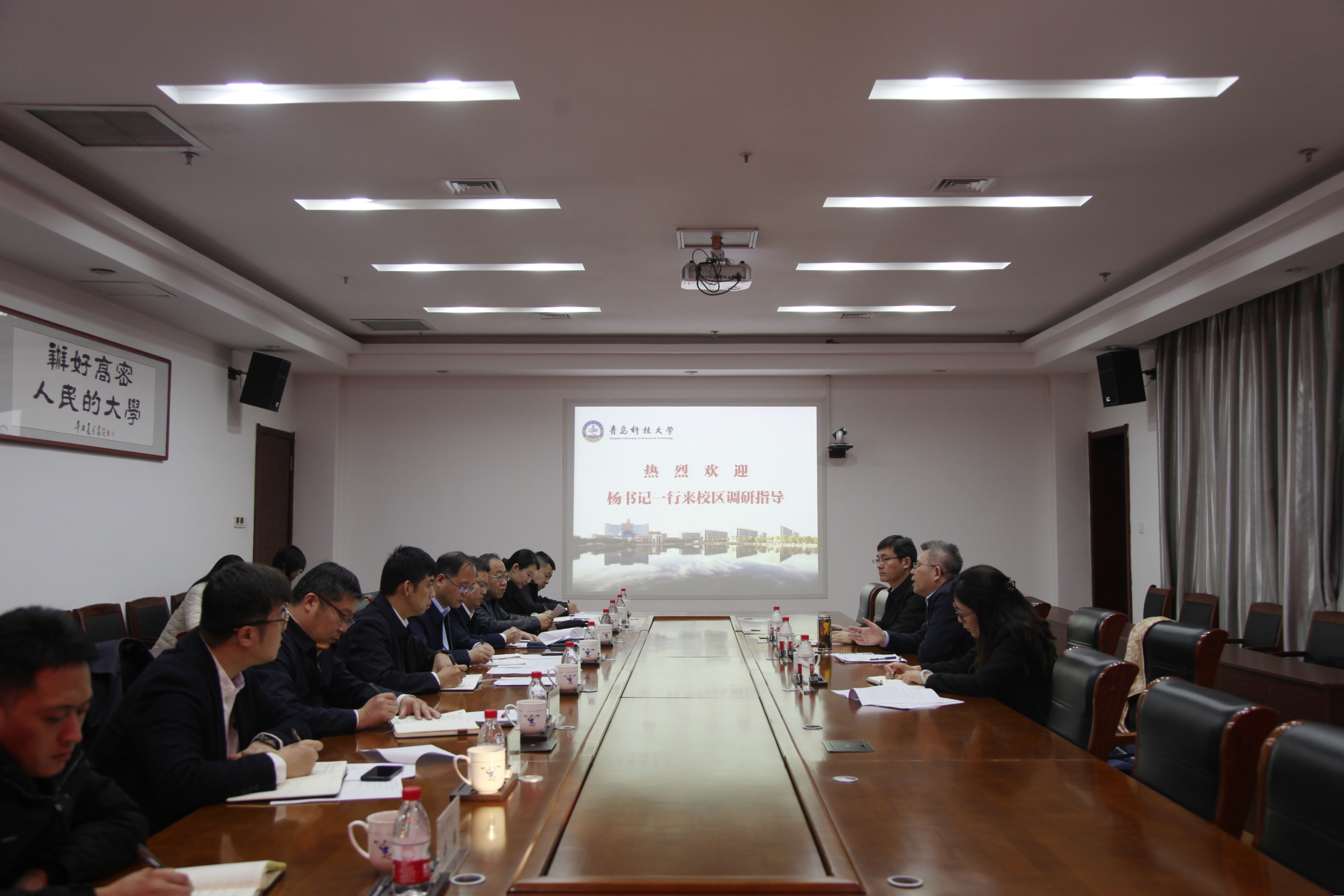 高密市有关领导,学校党委(校长)办公室、高密校区相关部门负责人参加调研。