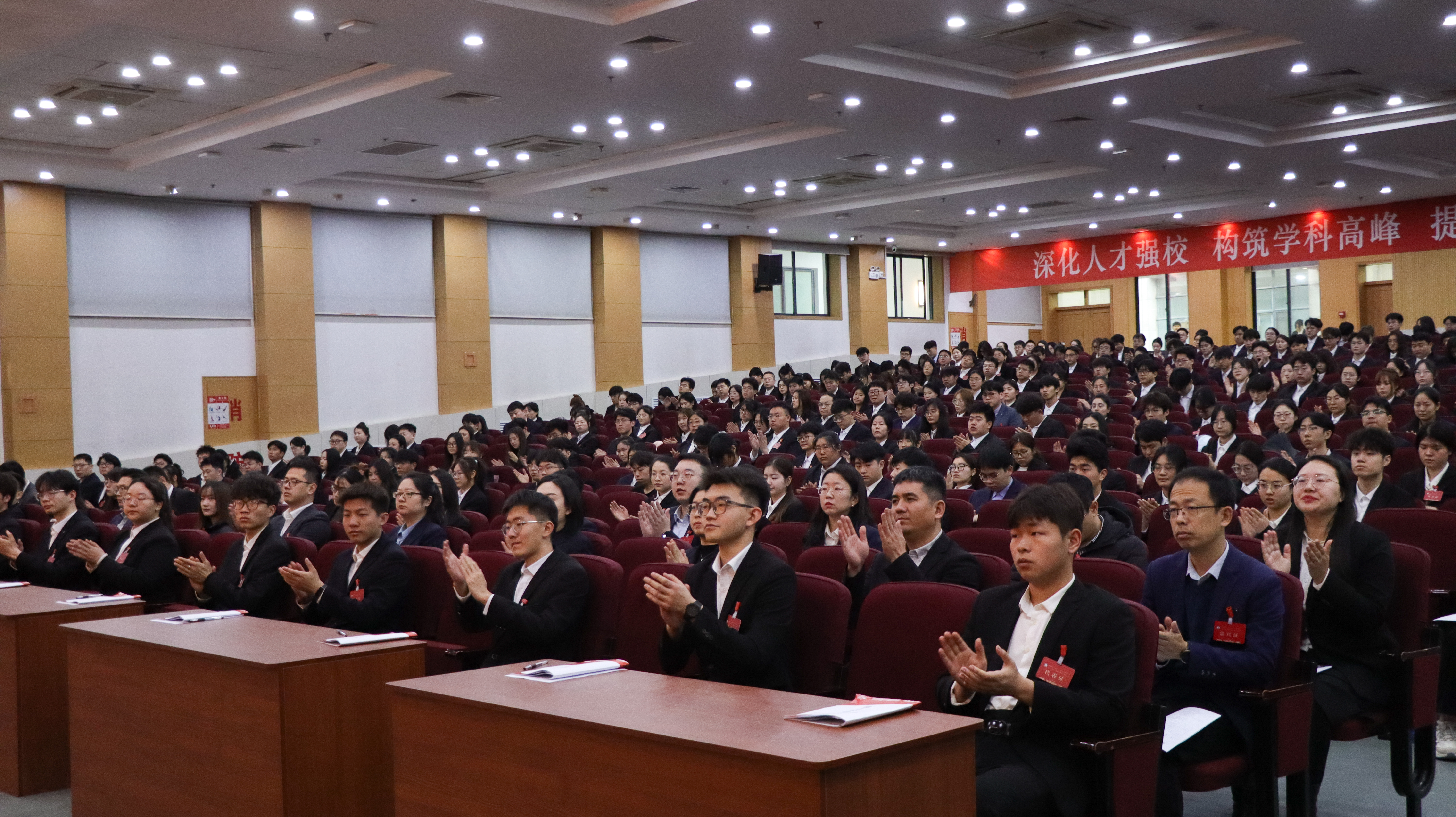 在全体会议上,第二十六届学生会执行主席赵梓清向大会作了《创新图强争一流 乘势而上开新局 为学校加快建设“特色鲜明 走在前列”高水平大学贡献青春智慧与力量》的工作报告,第五届研究生会执行主席韩朝阳作了《勇担时代使命 锐意开拓进取 团结带领全校研究生争当为中国式现代化挺膺担当的青春先锋》的工作报告。
