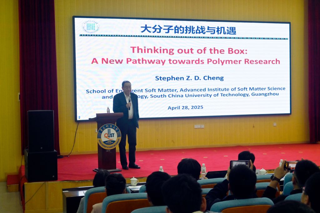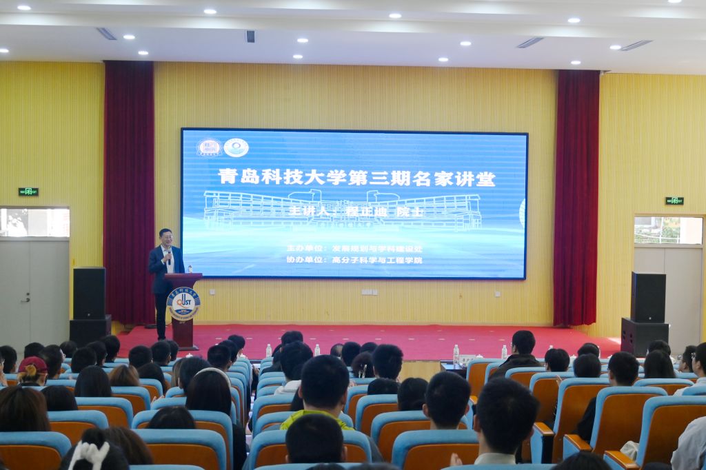 在问答环节,程正迪与师生围绕“高分子材料的绿色制备技术”“人工智能在材料研发中的伦理边界”等问题展开了深入讨论。相关学院负责人,师生代表及科研人员近200人参加报告会。