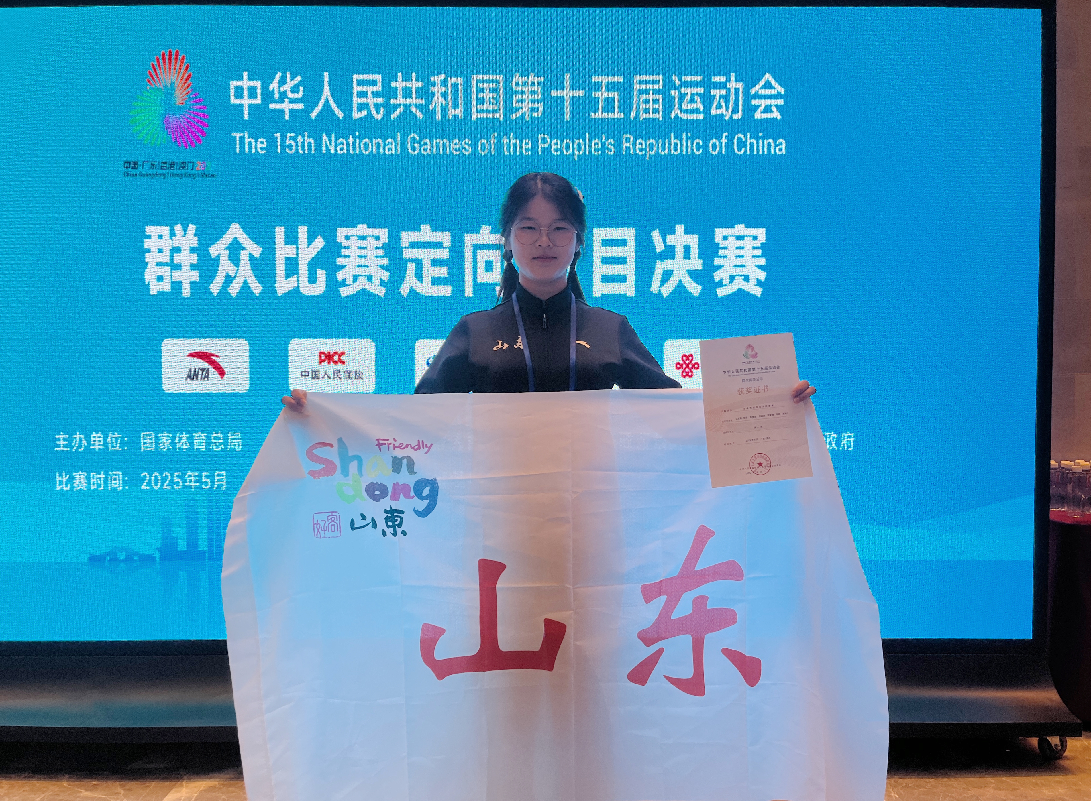 5月11日上午,中华人民共和国第十五届运动会群众赛事活动定向项目在广东茂名圆满落幕。5357cc拉斯维加斯高密校区学生郭梦迪与其他4名队友组成的山东女子代表队勇夺无线电测向女子团体金牌。这不仅是山东省在十五运会群众赛事活动中的首枚金牌,也是青科大学子在全运会赛场上取得的历史性突破。
