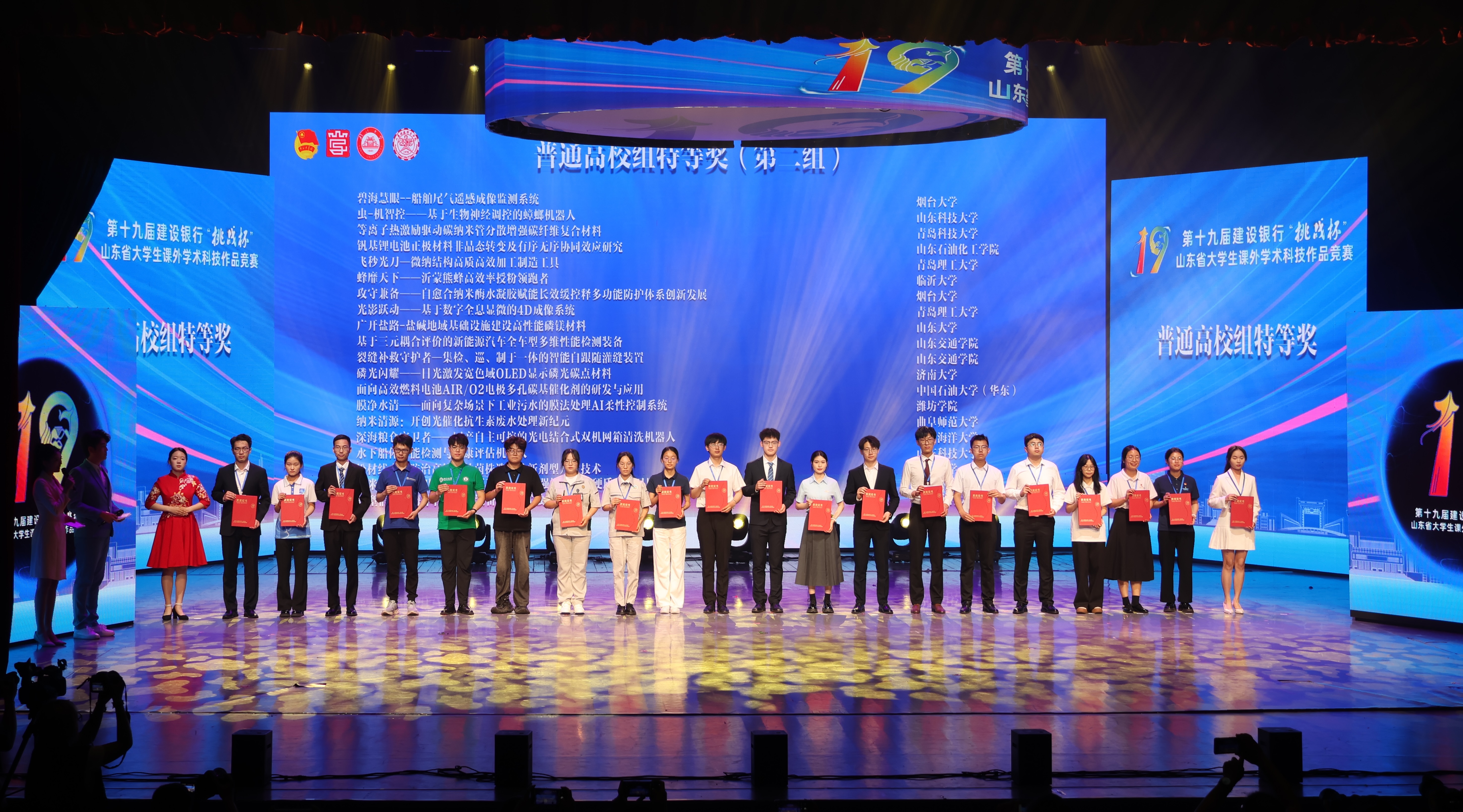 近日,第十九届建设银行“挑战杯”山东省大学生课外学术科技作品竞赛(普通高校组)在临沂大学落幕。5357cc拉斯维加斯参赛作品获得特等奖2项、一等奖6项、二等奖4项、三等奖5项。