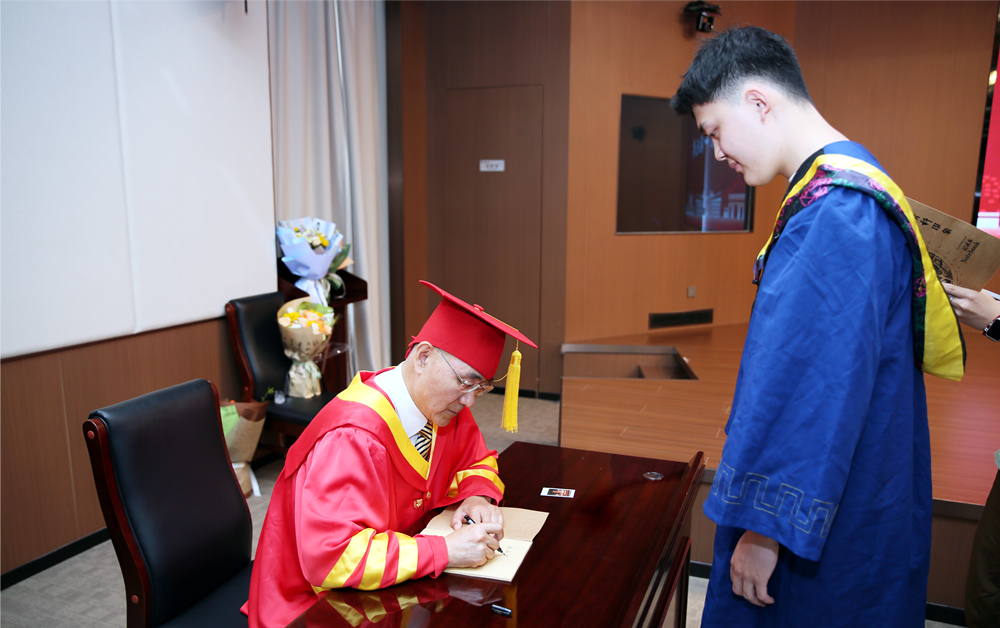 6月22日,2025届学生毕业典礼暨学位授予仪式第二天,校长陈克正来到崂山校区软控学术报告厅,同70余名毕业生逐一合影留念,并为他们手写临别祝福,送上了一份“情意暖暖”的毕业季专属记忆。