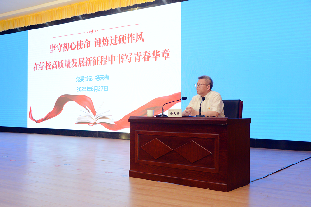 杨天梅为新发展党员讲授《坚守初心使命 锤炼过硬作风 在学校高质量发展新征程中书写青春华章》专题党课,从深入贯彻中央八项规定精神学习教育的背景、意义和方法路径;彰显优势特色,在教育强国坐标系锚定青科大方位;勇担时代重任,展现新时代学生党员优良形象三个方面为新发展党员讲授党课,并对同学们提出四点要求:一是铸牢绝对忠诚的政治品格,做信仰如磐的明白人。要持续深化党的创新理论学习,系统掌握习近平新时代中国特色社会主义思想的世界观和方法论,不断提高政治判断力、政治领悟力、政治执行力,自觉将个人理想融入党和国家事业,把对党忠诚体现在服务教育强国战略的实际行动中。二是锤炼务实笃行的过硬作风,做植根师生的服务员要主动深入课堂、宿舍、实验室和同学之中,真诚倾听师生所思所想,真实反映师生所急所盼,真情关心师生所忧所难,掌握第一手鲜活情况,使我们的工作更接地气、更有温度、更富成效。三是激发知重负重的担当精神,做攻坚克难的先锋队。要把“团结自强、艰苦奋斗、敢为人先、开拓创新”的科大精神化为自己的行事理念,把“吃苦耐劳、坚韧不拔、朴实无华、甘于奉献、同心协力、勇承重载”的橡胶品格化为自己的行事风格,不论遇到何种困难,都要敢于冲锋、善于冲锋,在担当中历练,在尽责中成长,努力当先锋、做表率。四是永葆清正廉洁的政治本色,做纪律如铁的践行者。要时刻绷紧纪律规矩这根弦,严守党的政治纪律和政治规矩,在学术研究、科研经费使用、评奖评优等工作中筑牢思想防线,坚决抵制“学术腐败”“微腐败”等风险。要发扬自我革命精神,主动参加警示教育,严肃开展批评与自我批评,自觉接受组织和群众监督,将廉洁要求内化于心、外化于行,确保学术生命与政治生命同向同行,以实际行动践行党员先进性,不负组织的信任与培养。