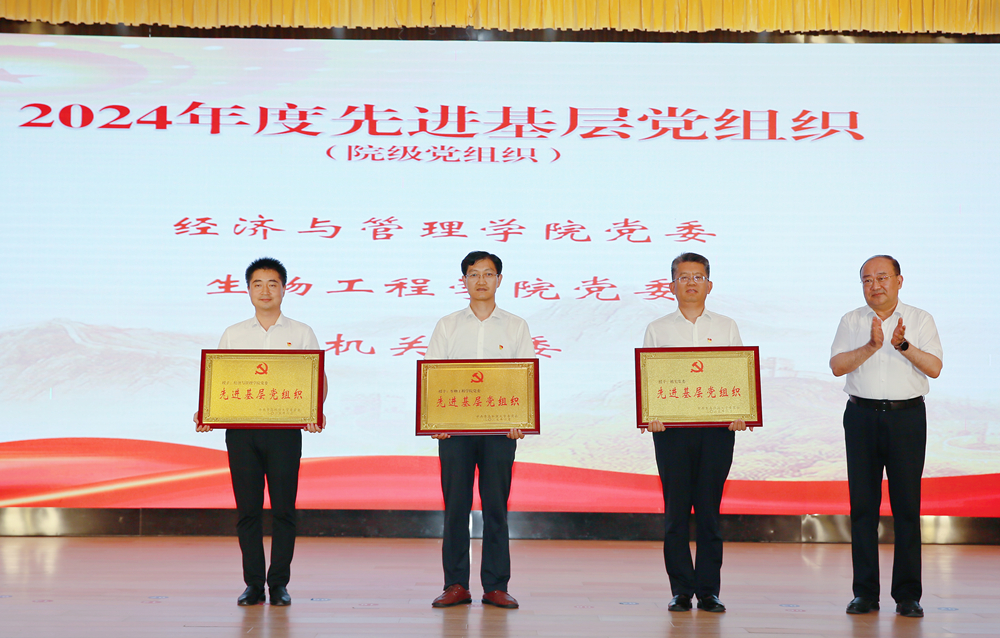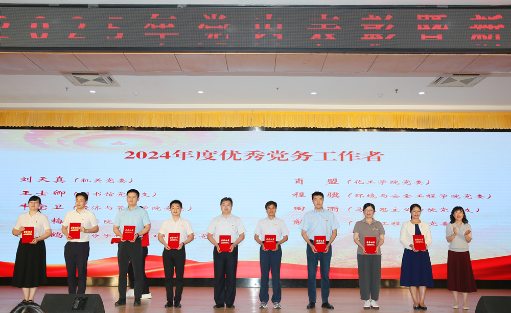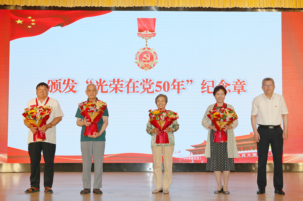 会议在雄壮的国歌声中拉开帷幕。会上,杨天梅代表学校党委向全校党员致以节日的问候,向“光荣在党50年”的老党员致以崇高敬意,向受到表彰的先进集体和个人表示热烈的祝贺,向光荣加入中国共产党的全体新发展党员,表示最诚挚的欢迎。李勇、沈文青、张洪坤、秦姣分别为先进基层党组织、优秀党务工作者、优秀共产党员颁奖,党委学生工作部部长王丽为新发展党员代表赠送了党章等学习资料。2025年度上半年全体新发展党员进行了集体宣誓,在场老党员重温了入党誓词,学生党员代表进行了发言。