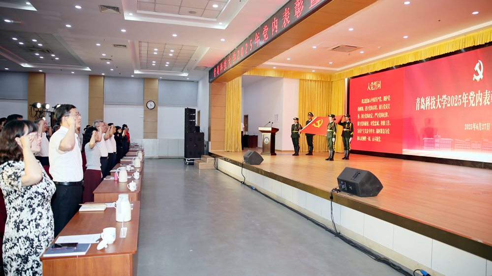 为庆祝中国共产党成立104周年,6月27日下午,学校在崂山校区第二报告厅隆重举行2025年党内表彰暨新党员宣誓活动。学校党委书记杨天梅出席活动并讲授专题党课。党委领导班子成员李勇、沈文青、张洪坤、秦姣出席活动。活动由党委常委、组织部部长朱敬义主持。