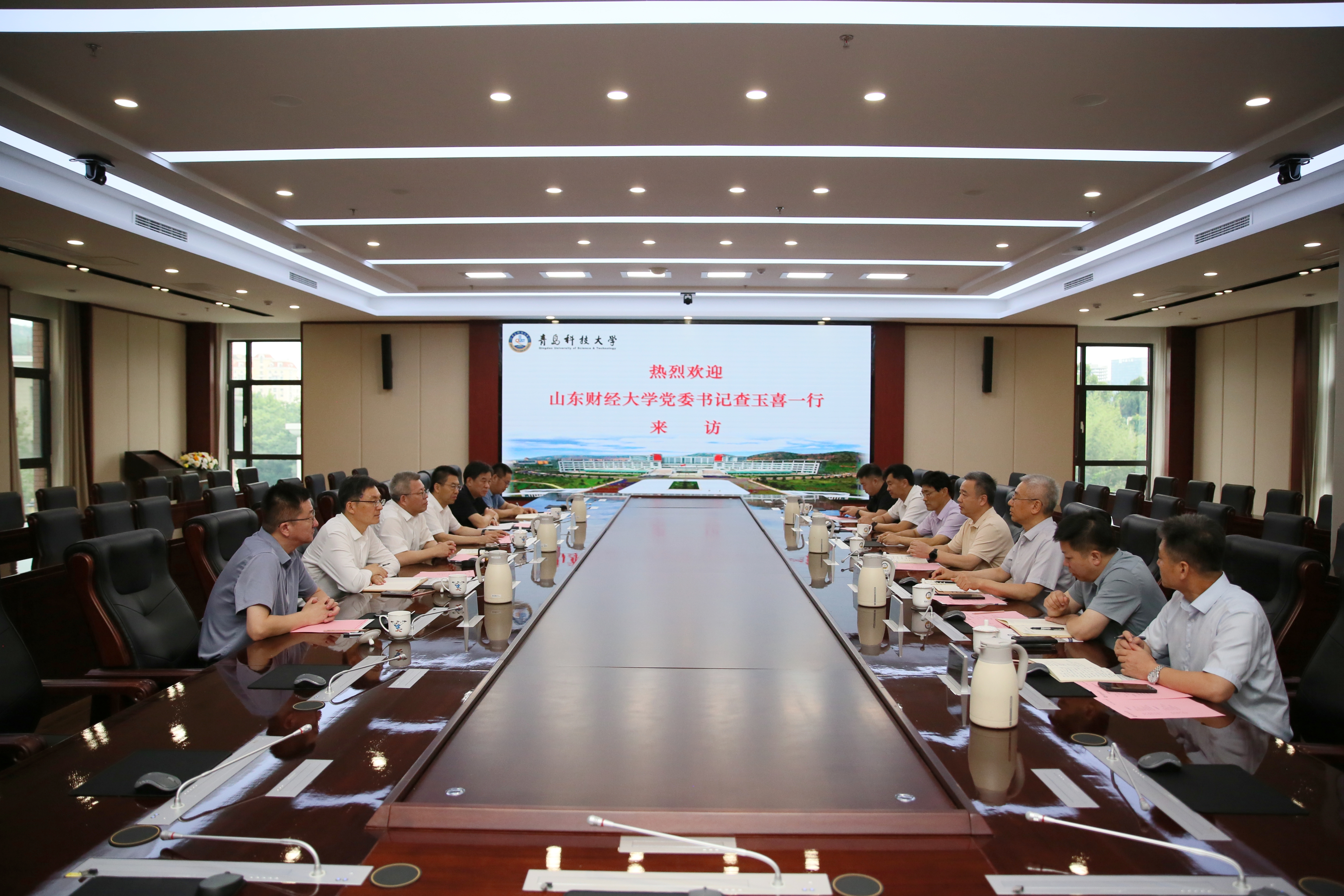 8月5日,山东财经大学党委书记查玉喜,党委委员、副校长张新一行来校调研交流,党委书记杨天梅会参加调研。党委常委、副校长吕万翔主持座谈会。