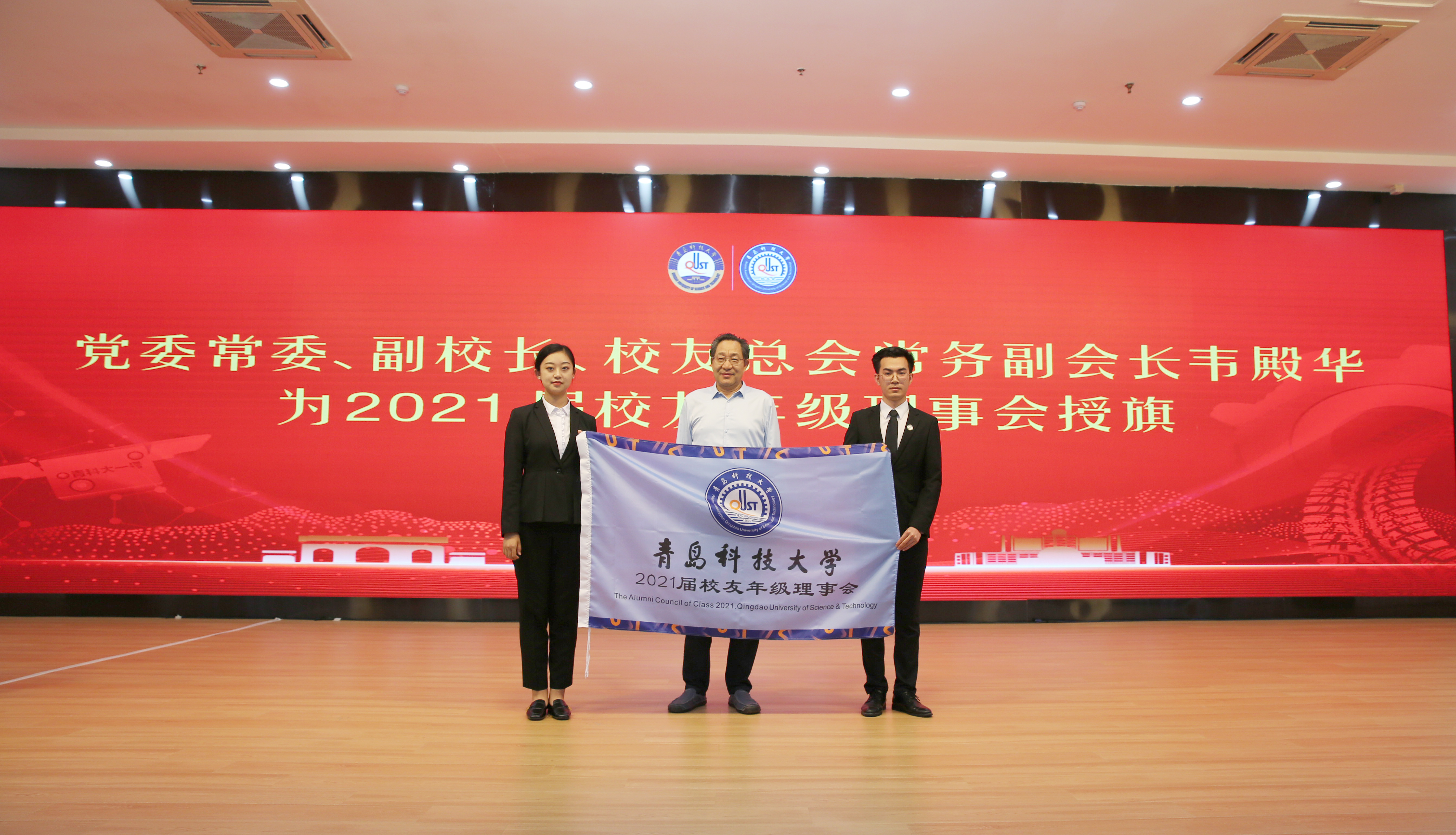 韦殿华为2021届校友年级理事会授旗并讲话。他谈到,一所完整大学是由在校师生和广大校友形成的荣辱与共的生命共同体和责任共同体。学校是校友的标签,校友是学校的名片,更是学校办学声誉的重要支撑,母校高质量发展的永续动力。在校友总会的组织协调下,新冠疫情全球蔓延期间海内外校友会的守望相助展现了青科大家风的丰厚内涵,也是青科大校友一家亲的生动写照;母校庆祝70华诞期间3000余名校友返校庆生,他们在感恩母校的同时也以优异的工作业绩和浓浓的赤子深情回报母校。韦校长以三个字勉励2021届校友年级理事会理事:一是“志”,人不但要立志,更要立大志,立长志,非志无以成学,面对困难坚决不能“躺平”,得过且过;二是“力”,做人不但要知足,遇到困难、挫折、失败时,千万不能冲动、失去理智,做出不明智的事情,还要知不足,善于知不足,才能正确评估自己,明确努力的目标和前进的方向,更要不知足,才能在学习和工作中不断努力和奋斗,不断创造出新成绩;三是“思”,无论学习何种知识,处于何种环境,从事何种工作,都要学会思考,勤于思考,只有“思”,才能保持头脑清醒,才能有智慧,取得更大的进步。