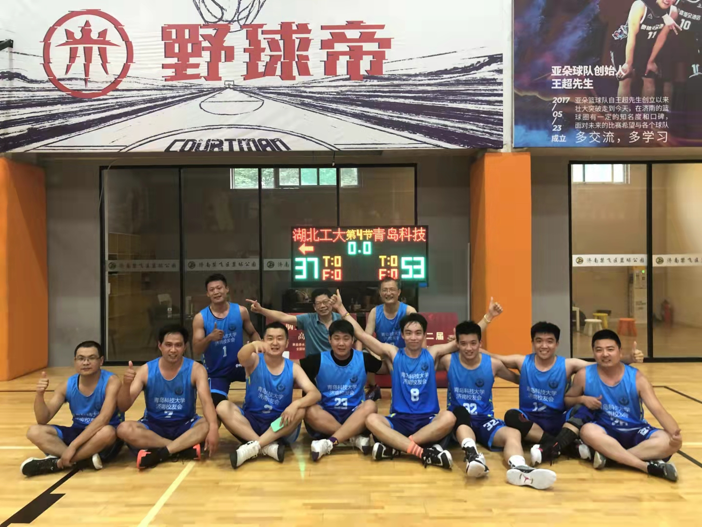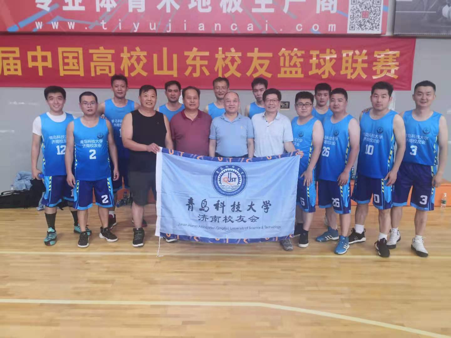 7月10日,“摘要杯”第二届中国高校山东校友篮球联赛在济南路人王禁飞区球馆开赛。青科大济南校友会积极发动校友报名组队,共有21名爱好篮球运动的校友参加训练及比赛。虽然球队组队时间短,队员之间磨合较少,但他们在比赛中不畏强队、顶住压力,充分发挥团队精神、默契配合、相互鼓励,特别是在后三场比赛中, 越战越勇,取得了三连胜的优异成绩。成绩的取得离不开球队的顽强拼搏、勇于挑战,也离不开广大济南校友的团结支持,比赛过程中济南校友会会长葛正礼、副会长曲书阳、秘书长于吉明等校友多次到赛场为队员加油指导。通过此次比赛,济南校友们以众志成城、奋斗有我的精神为青科大和广大校友争得了荣誉,充分展现了青科大校友风采,诠释了科大精神和橡胶品格。