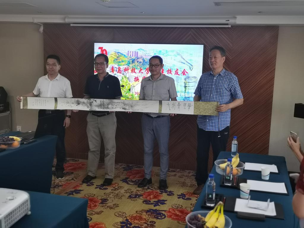 吕万翔、王文哲向三地校友会、桂林橡胶研究院赠送了由艺术学院于宏涛、马丽两位老师精心创作的《梦里青科大》等书画作品。代表学校诚挚邀请广大校友常回母校走一走、看一看,继续支持母校的建设与发展,共创青科大的美好明天。他说,今年正值学校建校70周年,学校将于9月20日上午在崂山校区举行建校70周年纪念大会。盛世嘉年迎宾客,橡胶“黄埔”盼归鸿,党委书记马连湘、校长陈克正已经联名郑重发出邀请,学校热忱欢迎和衷心期待海内外校友重回母校、畅叙情谊,诚挚邀请社会各界朋友共襄盛典、同谱华章!