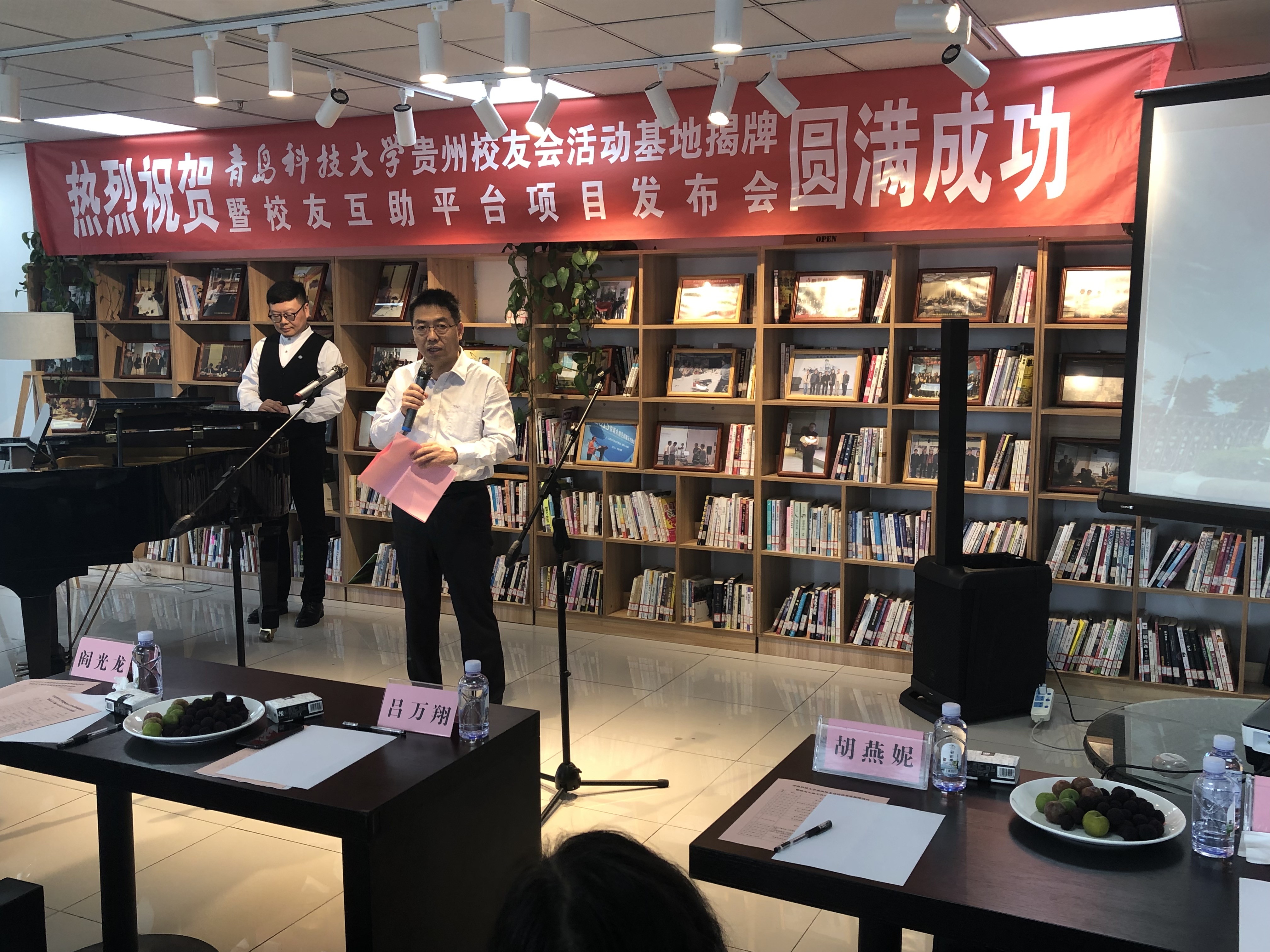 吕万翔代表学校对活动基地揭牌和互助平台项目的发布表示祝贺,他谈到:活动基地必将成为连接学校与贵州校友的纽带,为校友、各界企业家搭建合作交流的平台,形成良好的资源互补,实现共赢发展。