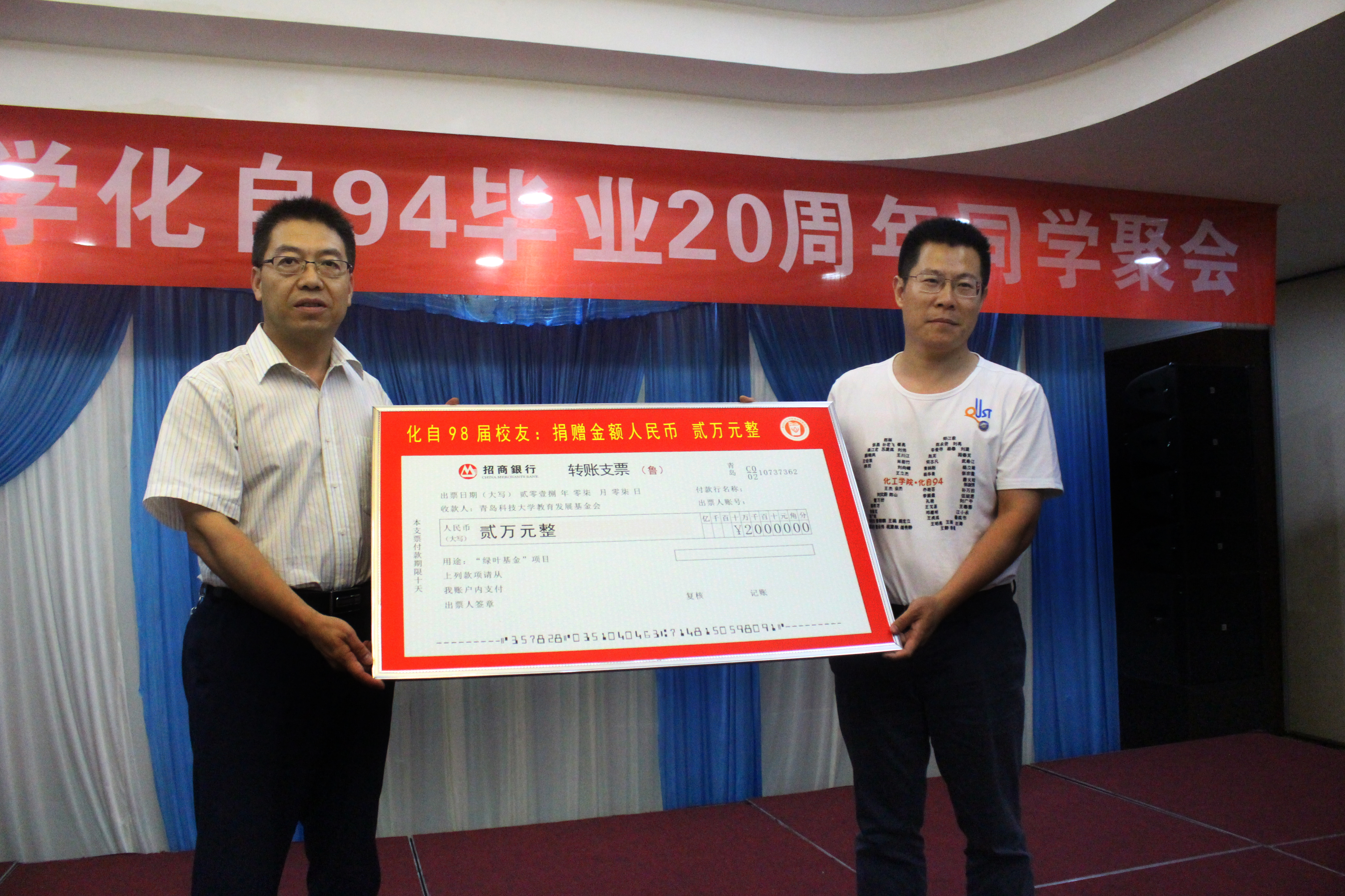 活动中,吕万翔接受了化自98届校友向“绿叶基金”捐赠的人民币2万元,并向化自98届校友颁发捐赠证书。