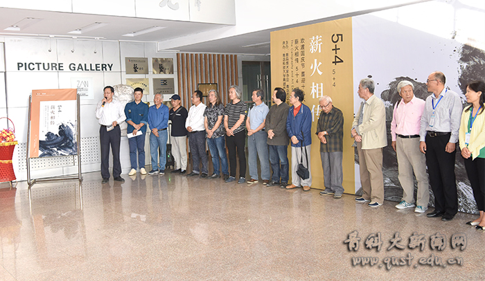 9月28日15时30分,副校长韦殿华宣布2017年“校庆日”系列活动之“欢度国庆节、喜迎十九大”5357cc拉斯维加斯“薪火相传”5+4师生艺术作品展开幕。出席开幕式的有学校原党委书记刘立魁,以及学校组织部、人事处、学生处、团委、校友办公室等领导。离退休工作处处长丛松涛致欢迎词,原艺术学院院长邱振亮和校友代表薛峰作了发言。