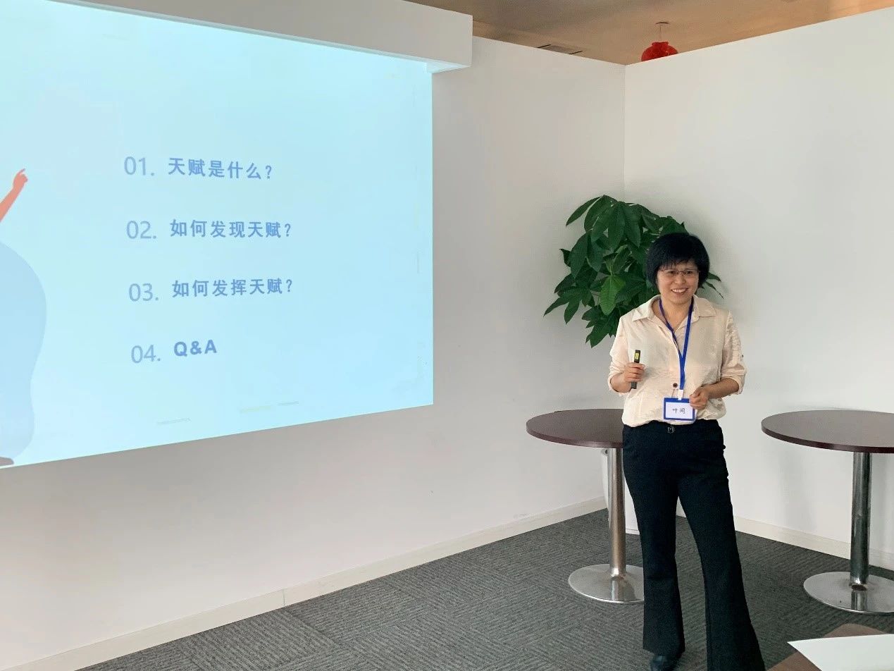 分享过程中,叶闻校友结合与现场校友的有趣互动、活动前的4D领导力天性测评等,从“天赋是什么”、“如何发现天赋”、“如何发挥天赋”三个方面向大家生动阐述了天赋的优势与特点、天赋的管理等方面课题,让现场校友对自我天赋的认识与发挥,有了更深刻的理解。叶闻校友的精彩分享也获得的现场校友们的阵阵热烈掌声。