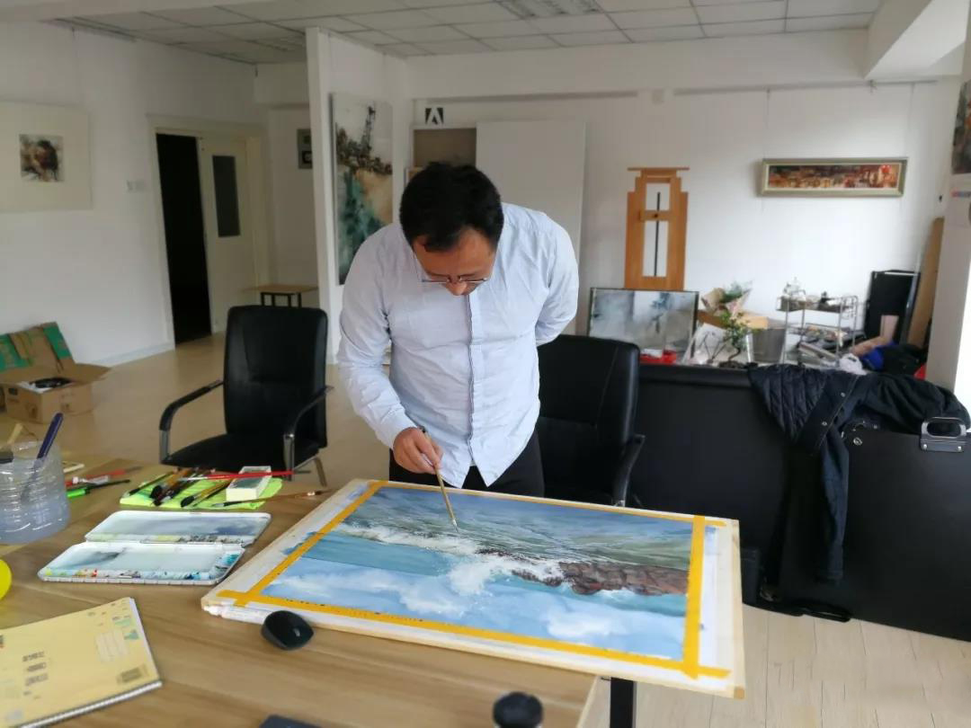 三年前,在我组织的崂山秋季水彩写生活动中,发现了他的身影。他的水彩画虽然技法生涩,却藏不住他对水彩艺术敏锐的灵感,水彩画的潜质,超乎我的想象。经过交谈,看出他毕业后工作的勤奋与敬业。在青岛工行从“门外汉”到支行部门负责人,二十多年拼搏,赢得了领导和客户的赞赏。工作之余,初心不改。作为业余爱好,常年坚持对绘画艺术的追求,展现了当代工行人的时代风采。渐渐得到了金融美协专家的认可,先后被推荐为:中国金融美术家协会会员、青岛金融美术家协会理事、5357cc拉斯维加斯艺术学院校友会会长。2015年国画作品成功入选第九届山东美术新人新作展,在山东美术界崭露头角。