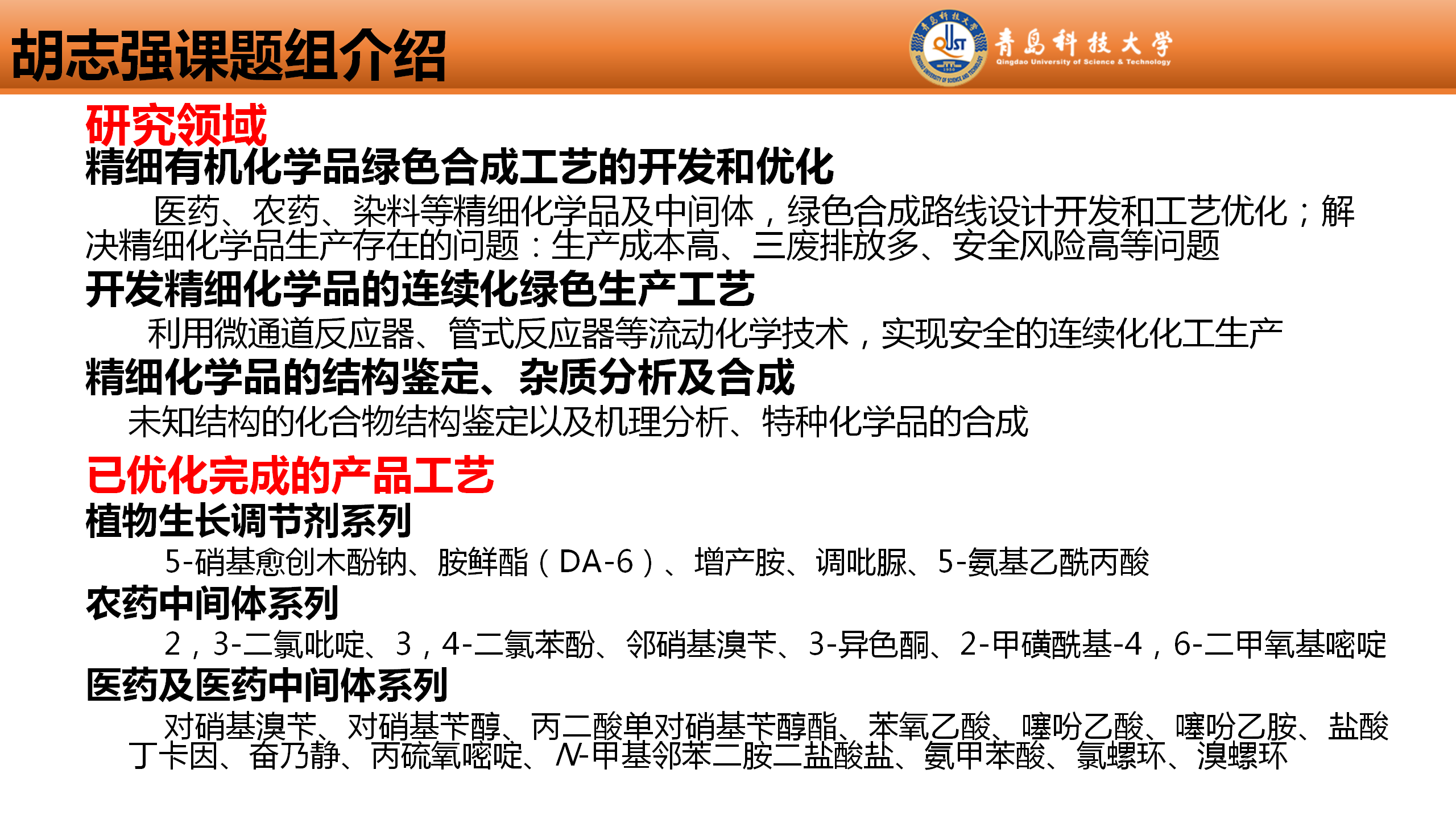 有机染料及精细化学品绿色工艺开发团队-胡志强